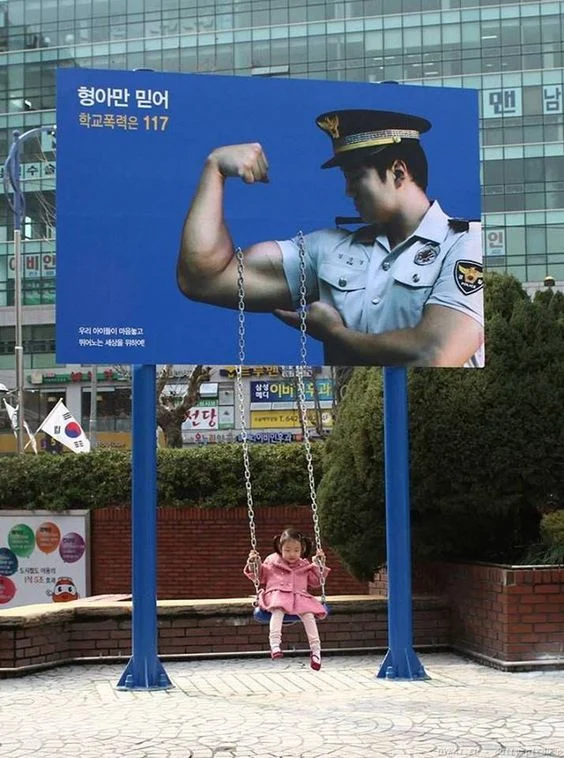 То есть это не копия плакатов "советский пограничник стережет твой мирный сон", которые меня окружали в октябрятском детстве, а о том, что "если тебе расквасили нос, не надо приводить старшего брата разбираться".