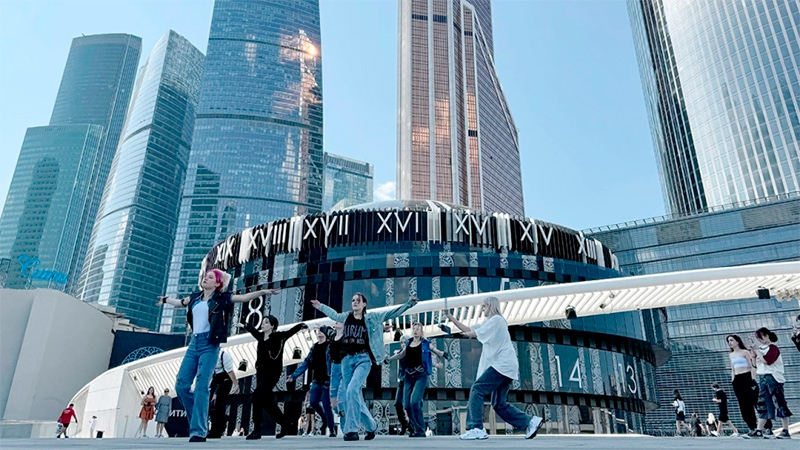 Блогеры снимают танцевальное видео на фоне «Moscow-City» (Фото: Александр Легкий / Global Look Press)