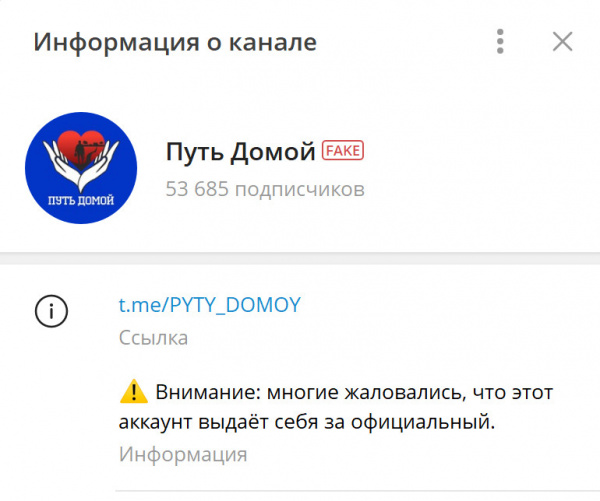 Мне стало интересно, пошел проверять. И действительно - в ТГ "Путь домой" содержится надпись "FAKE".