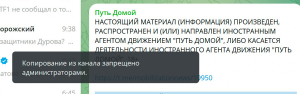 Как там вопят защитники Дурова? В Телеграме хотят ввести цензуру!!!!! А это что? Мессенджер Telegram пометил канал "Путь Домой" и региональные чаты жён мобилизованных плашкой "fake" после жалоб провластного юриста Ильи Ремесло. Та не, никакого сотрудничества с путинской бандой.... Так, слегка... Плюс копирование текста из канала запрещено! Только что сам проверил, так и есть.