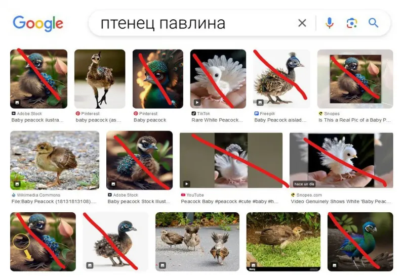 В Reddit в заметке с пафосным названием "Нейросети убивают поиск Гугла" пишут, что Google всё чаще перестаёт показывать реальные фото, взамен предлагая сгенерированный ИИ шлак. И приводят вот такую картинку.