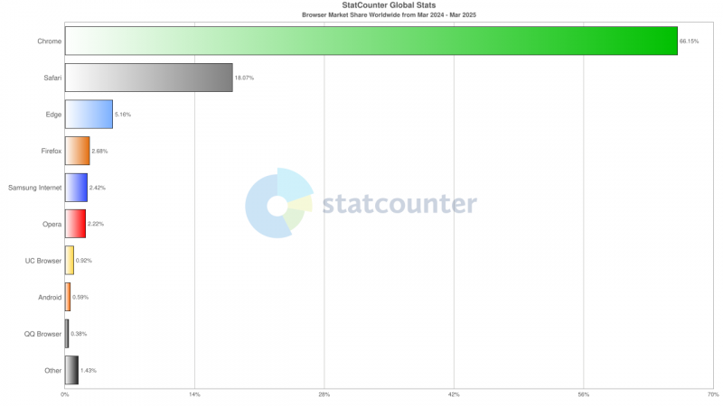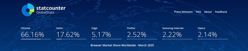 По ссылке можно посмотреть самые разные виды статистики использования браузеров: по странам, по устройствам и так далее.