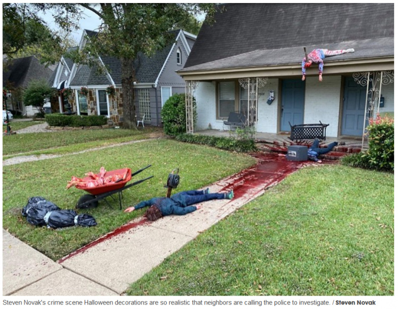 Заметка "An East Dallas Home's Halloween Decorations Prompt Multiple Police Visits".