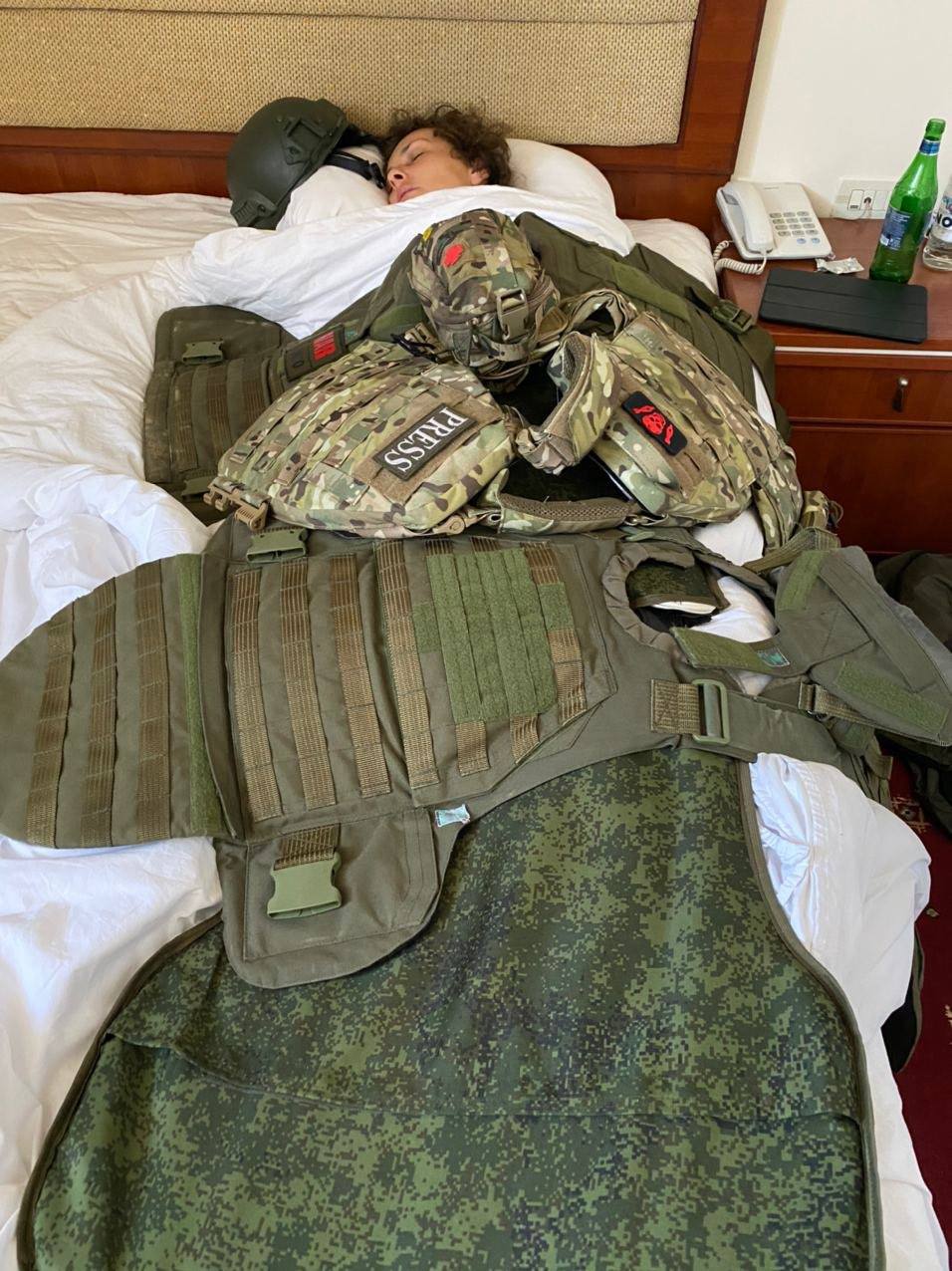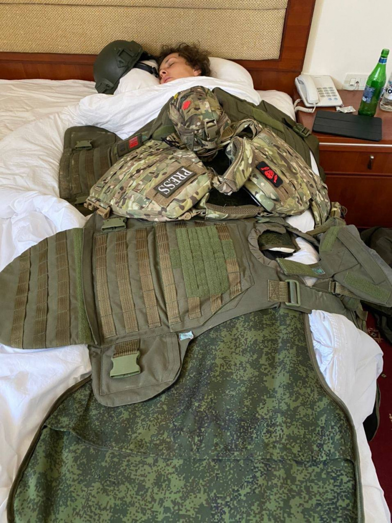 Тут, впрочем, никак не степь, а комфортабельный номер в гостинице, но броники же надо накидать - для эффектного кадра. И непонятно, почему дрыхнет не в каске, безобразие.