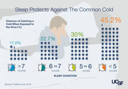 Ученые (не британские) выяснили, что риск заболеть от вирусных инфекций заметно выше на фоне дефицита сна. Дефицит сна - для организма является стрессом, иммунная система активно вовлечена в стрессорный физиологический ответ, поэтому очень важно высыпаться в период сезонных вирусных инфекций. Не подавляйте лишний раз собственный иммунитет, в жизни и так хватает факторов, которые его подавляют.