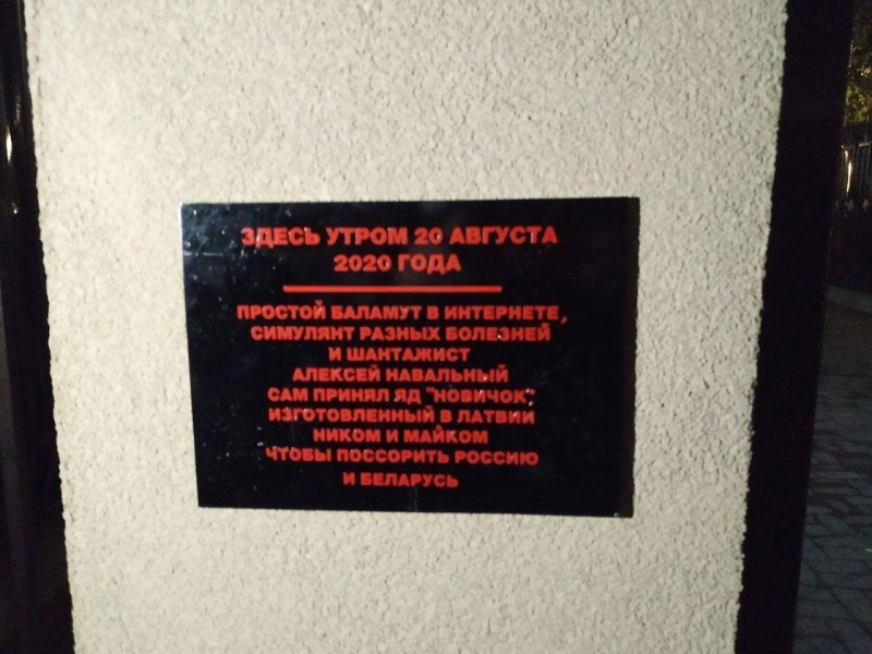 Пишут, что эта табличка установлена на стене гостиницы Xander в Томске, в которой останавливался Алексей Навальный.