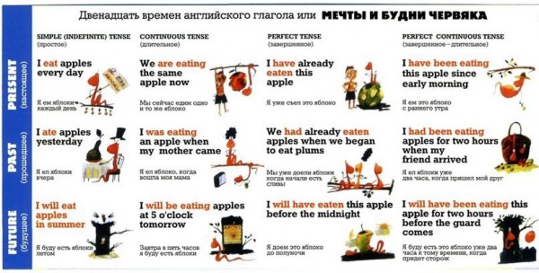 Крайне наглядная и полезная таблица времён английских глаголов - вот отсюда. Настоятельно рекомендую тем, кто изучает английский - очень помогает.