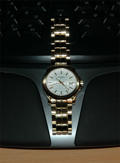 Пришлось неожиданно покупать новые часы - не могу без часов на руке. Я человек непафосный и негламурный, поэтому часы покупаю такие, чтобы они были скромненькие, но фирменные. На этот раз остановился на фирме с довольно забавным названием "Ротари" (Rotary) модели Dolphin. Почти Ротару, хотя я не фанат. Не знаю, что швейцарцы имеют в виду таким названием.