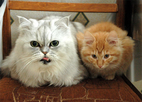Кот Тоша проявлял интерес и всячески мявчил, приветствуя юную даму, но дама пока его посылает. Вежливо, но решительно.