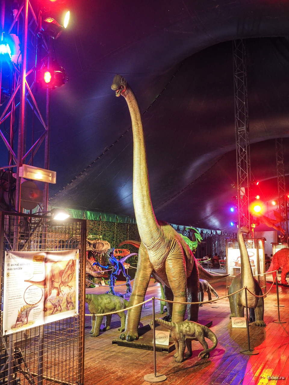 В соседний городок привезли выставку динозавров. Мы, конечно, после посещения Динополиса свой динозаврий зуд уже более или менее утолили, но тем не менее на выставку сходили, потому что ребенку все равно интересно. Предлагаю вашему вниманию небольшой фоторепортажик.