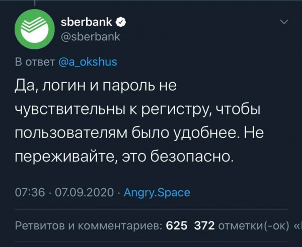 Серьезно, не шутка, проверено: логин и пароль - регистронезависимые. Чтобы пользователям было удобнее. Не переживайте, это безопасно, утверждает "Сбербанк".