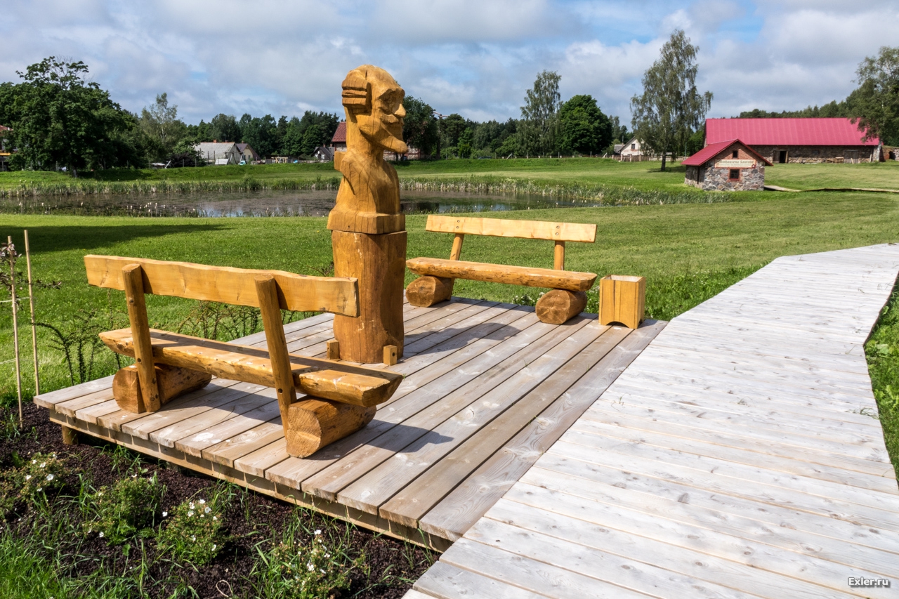 Через каждые 20-30 метров там попадаются места для отдыха с забавными резными фигурками.