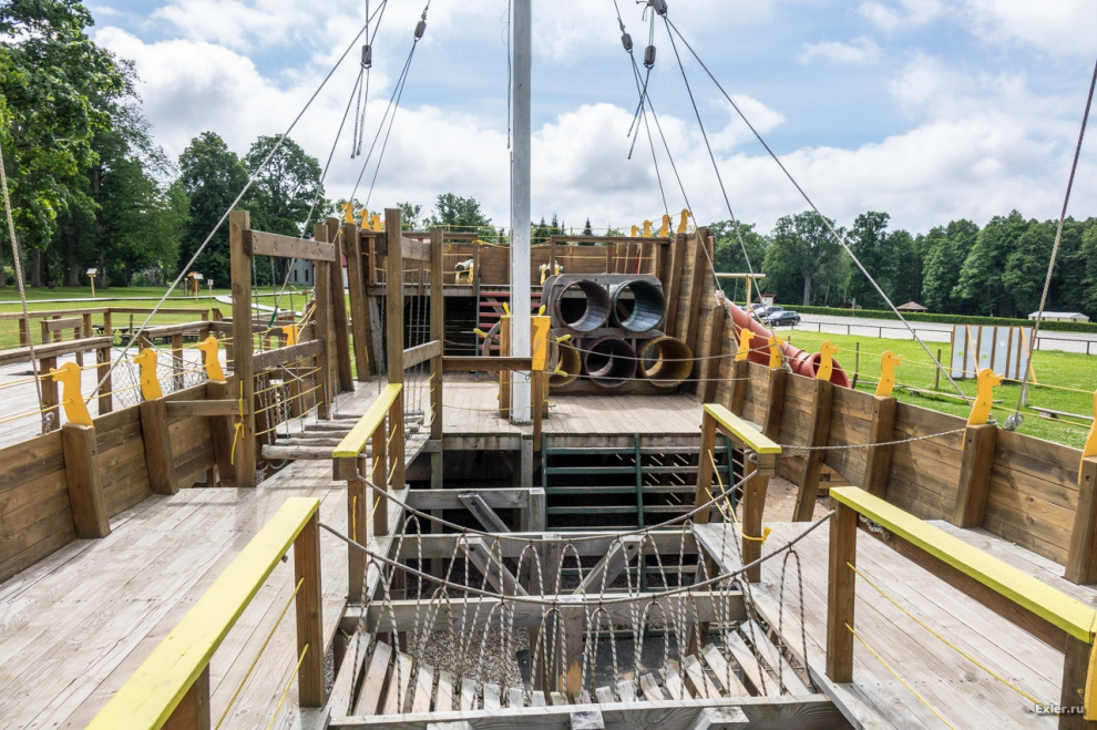 Внутри корабля - всевозможные лесенки, препятствия, лазы, горки и так далее. Ребенок был в восторге, развлекался там с час.