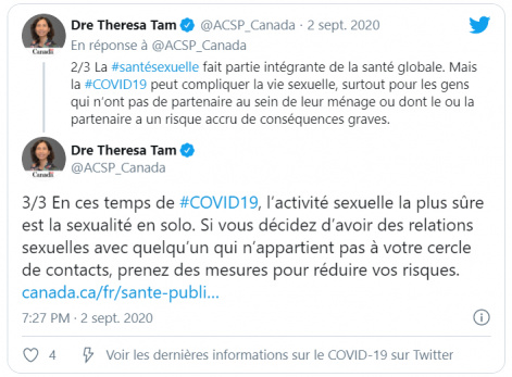 Третий человек в общественном здравоохранении Канады доктор Тереза Тэм выступила с пространным заявлением, в котором она рассказала о правилах сексуальных отношений при пандемии.