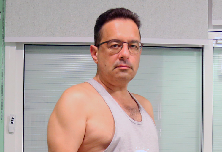 Upd: Ну раз уже в Facebook выложил, еще одна сегодняшняя хипстерская фоточка. Это мы все с Юным Каталаном с марта гантельками занимаемся. Мне-то это все ни к чему в 54 года, но Юному Каталану нужно подавать пример, так что...