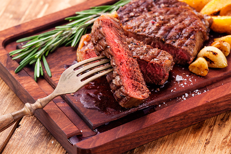 Есть мнение, что стейк солить нужно только после приготовления. Мол, посолишь вначале — получишь сухой стейк. Не знаю, правда ли эти люди думают об осмотическом давлении, когда выдвигают такие суждения, но, даже если так, у меня для них плохая новость. Или хорошая. Соль действительно вытягивает жидкость из мяса, но только это нам на руку. Чем суше мясо будет на поверхности, тем быстрее оно получит великолепную поджаристую корочку на сковородке. К тому же, если посолить кусок мяса заранее, соль за этот период проникнет внутрь и просолит ваш стейк гораздо лучше. Но самое потрясающее, что соль в процессе своего проникновения внутрь не только просаливает мясо, но и видоизменяет часть его белков. Денатурирует. А денатурированные белки гораздо лучше удерживают влагу. Таким образом, просоленный заранее стейк не только будет вкусным, но и рискует оказаться более сочным.