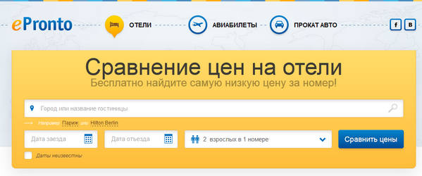 Все эти, и многие другие системы бронирования гостиниц, присутствуют в выдаче метапоисковика ePronto, и вы всегда сможете найти самые выгодные предложения.