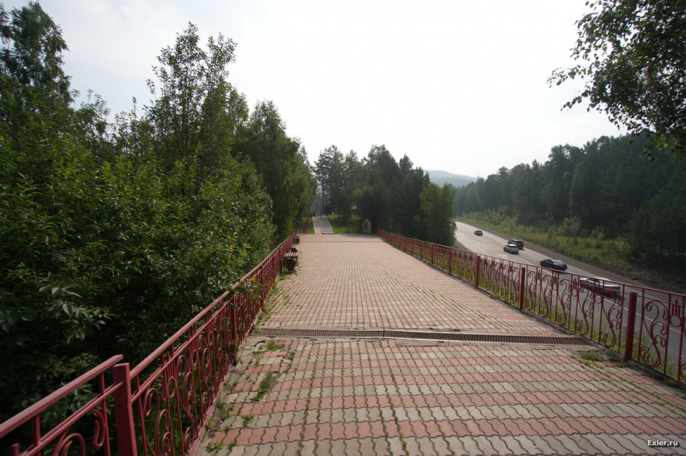 Смотровая площадка "Царь-рыба" на Слизневском утесе близ деревни Овсянка, родины писателя Виктора Астафьева. Площадка представляет собой балкон на отвесной скале, к которому ведет дорожка от автомобильной стоянки.