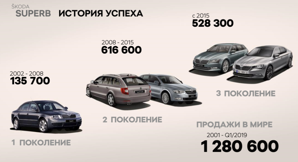 Сначала Тимур напомнил об истории успеха предыдущих трех поколений ŠKODA SUPERB.