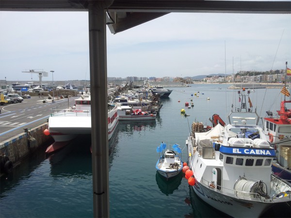 Я про этот ресторанчик уже пару раз писал. Место больно колоритное - ресторан находится в здании рыбной биржи порта Бланеса (вот тут). Сидишь на втором этаже, разглядываешь кораблики и яхты - красота.