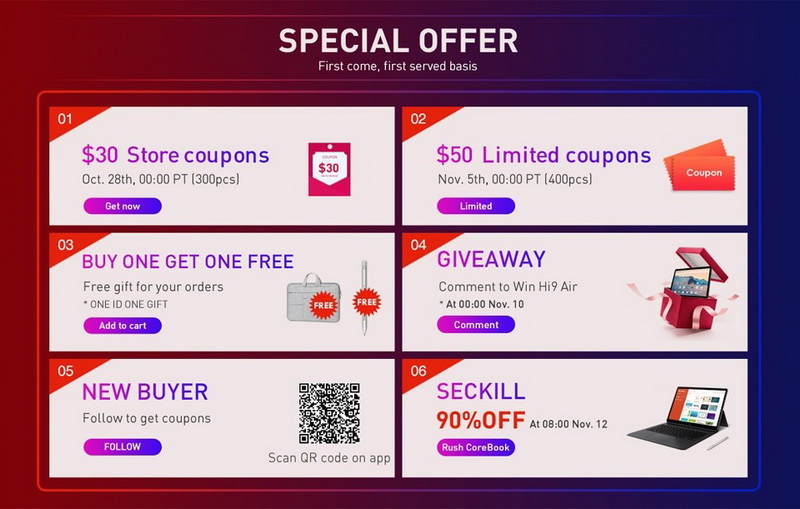 Планшеты и ноутбуки Chuwi продаются с скидкой до 60 долларов и подарками на 11.11!