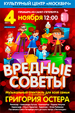 4 ноября в КЦ «Москвич» состоится фееричная постановка спектакля «Вредные советы», который был создан специально к торжественной дате.