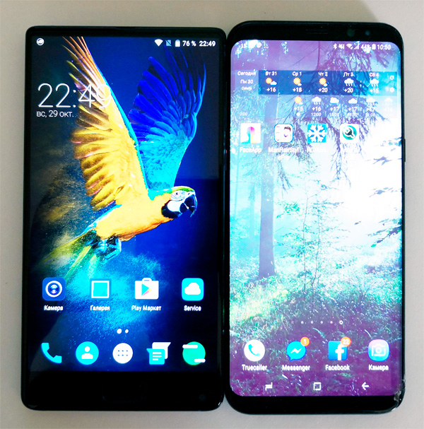 Из Gearbest приехал интересный безрамочный телефончик Elephone S8. Вот он слева от Galaxy S8+.