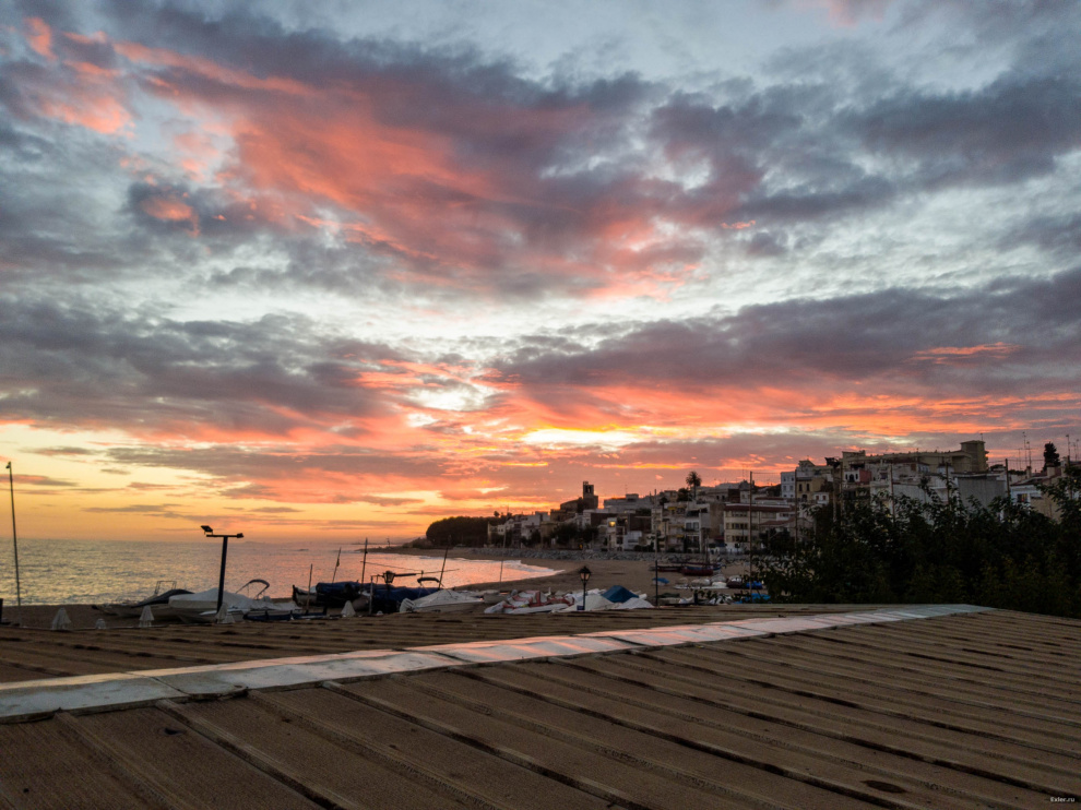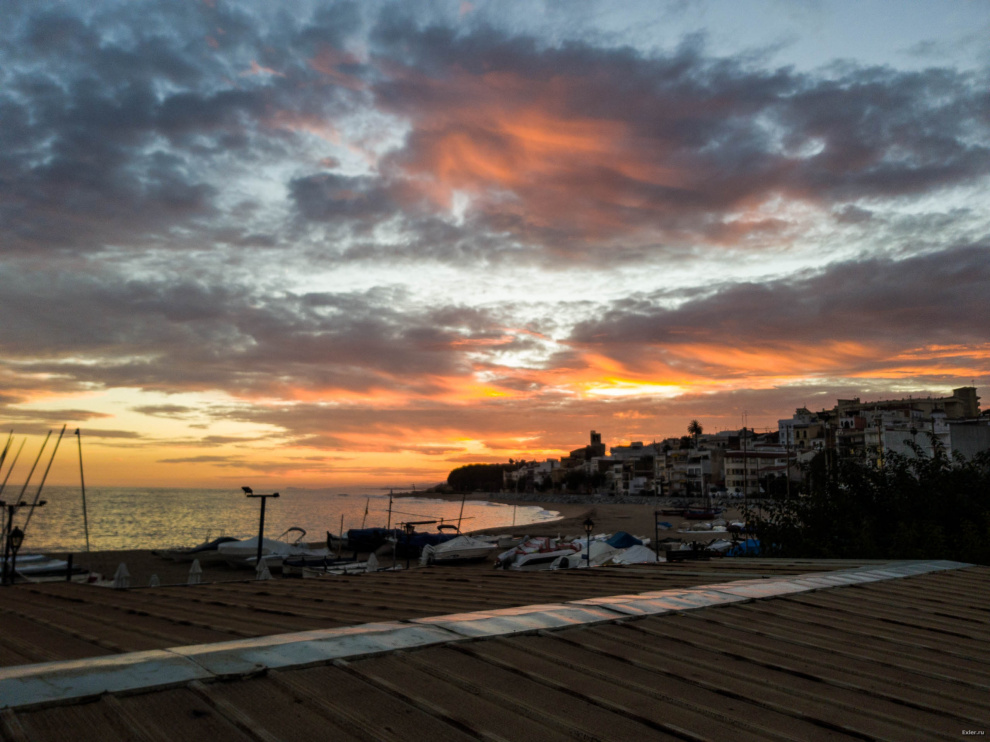 Поснимал немного вечерком в соседнем городке Сан-Поль-де-Мар. Городок расположен в небольшом заливе, ну и там закаты, конечно, намного красивее, чем в нашей Калейе, где берег совершенно ровный.