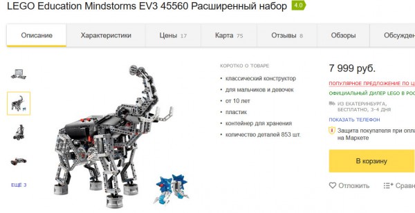 По странному стечению обстоятельств российский киберслон с легкостью обнаруживается на Яндекс.Маркете и оказывается роботом-конструктором LEGO, но я уверен, что через полгода-год все детали этого конструтора будут заменены российскими аналогами. Ведь 12,5 миллиардов выложили, есть где разгуляться инноваторам. А премьер ведь - он как ребенок. Покажешь ему какой-нибудь галимый китайский смартфончик, назовешь его "новым российским айфоном" - премьер и радуется. Деньги выделяются, все довольны, Россия - великая кибердержава. По словам всяких крутских. А они ведь врать не будут, государевы же люди.