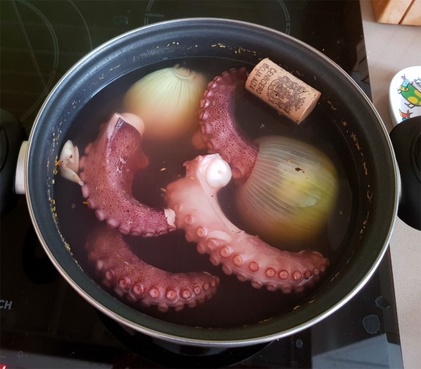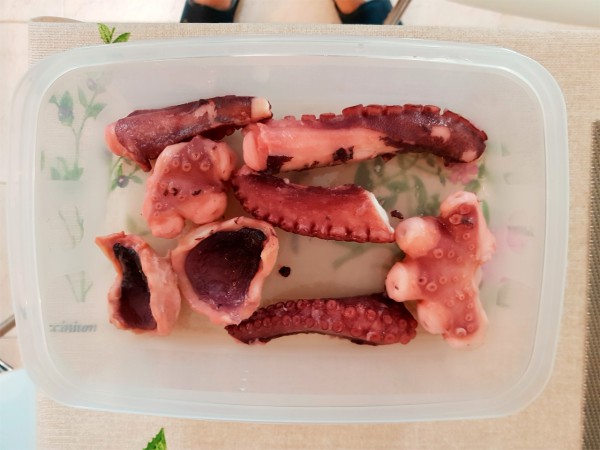 Пытаюсь постичь пищевой дзен под названием "осьминог". Покупать уже вареного в упаковке в "Меркадоне" - быстро надоело. Там два вареных кусочка щупальца по цене €5-50, при этом только что выловленный свежий осьминог в кило-полтора обойдется где-то в десятку.
