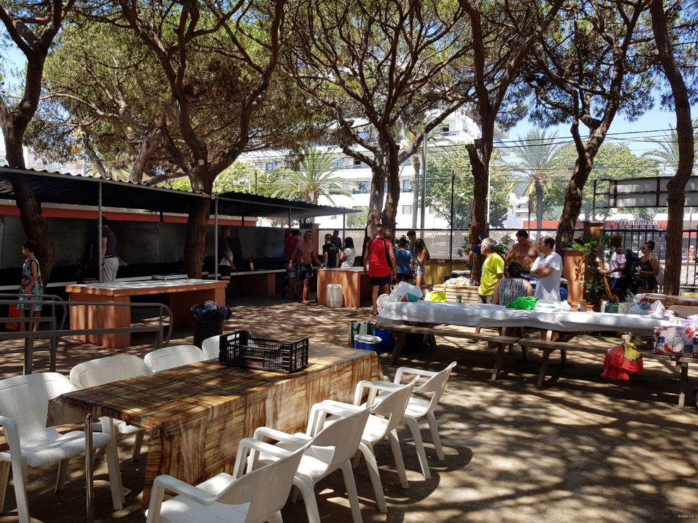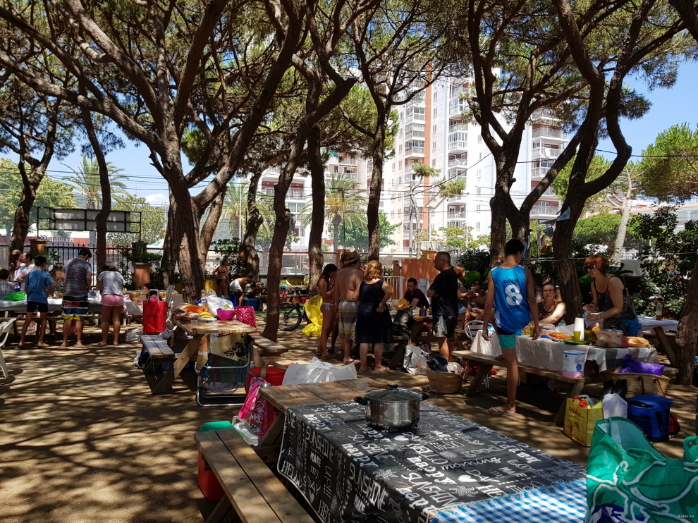 В Санта-Сусанне при одном отельчике есть вот такая полянка для пикников: столы, которые по-всякому комбинируются, ряд небольших мангалов, мусорные баки, туалеты, душ, ровно в двух шагах пляж - в общем, красота, очень удобно. Стол и мангал сдается в аренду и постояльцам отеля, и всем желающим - €110 за стол и он ваш с 10 утра до 20 часов. За мангал, если он нужен, дополнительно пятерка.