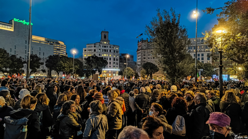 Вчера в Барселоне на площади Каталонии с 18:30 проходил антивоенный митинг, созванный каталонской организацией "Aturem la guerra" (Остановить войну). Я на этом митинге побывал.