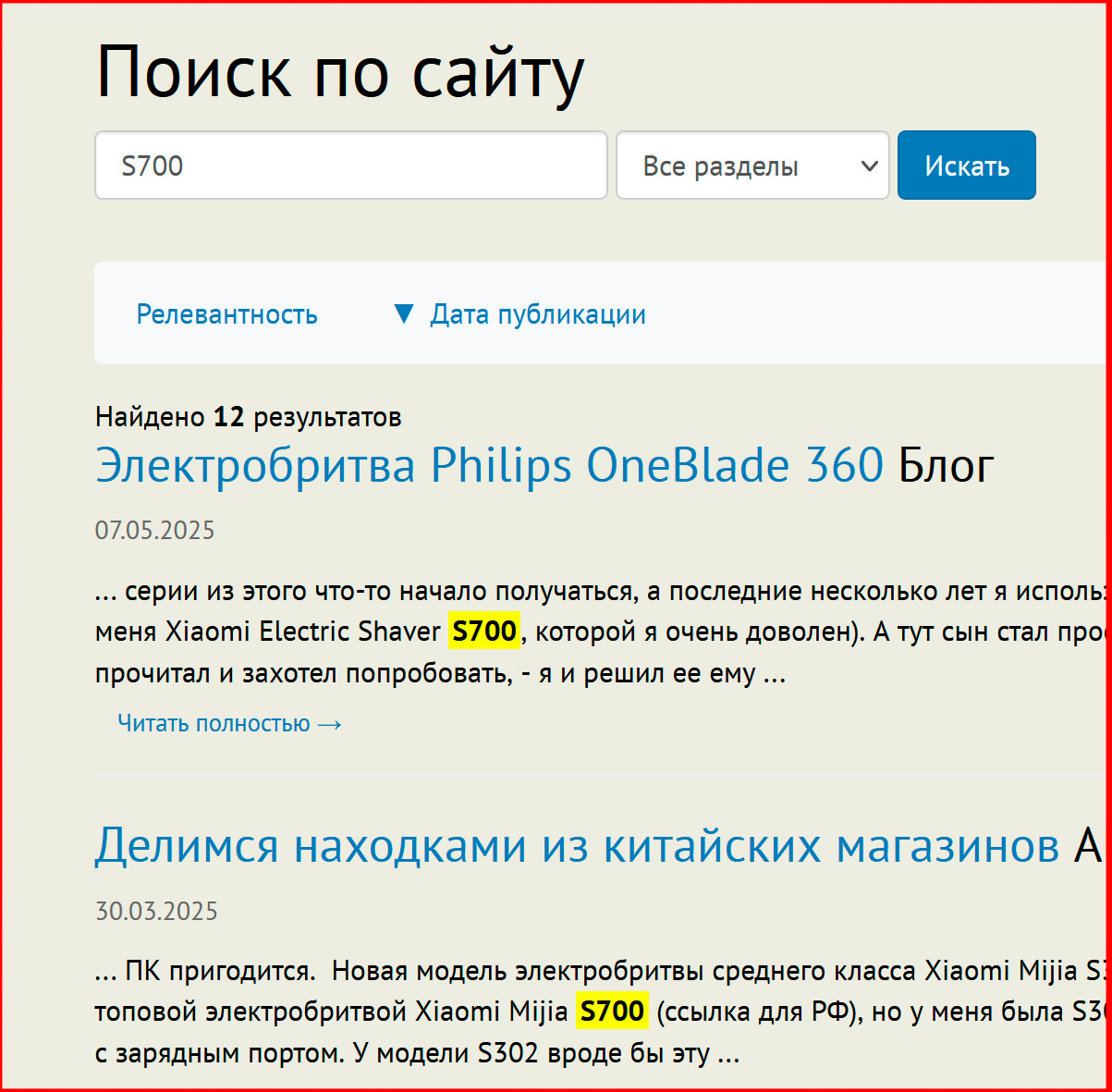Результаты поиска по умолчанию выводятся от новой даты к старой, также вы можете изменить сортировку выдачи на релевантную. Также поиск можно вести по конкретным разделам, причем если вы вызываете поиск из, например, раздела по кино, то там по умолчанию задается поиск по данному разделу. Но его, разумеется, можно поменять.