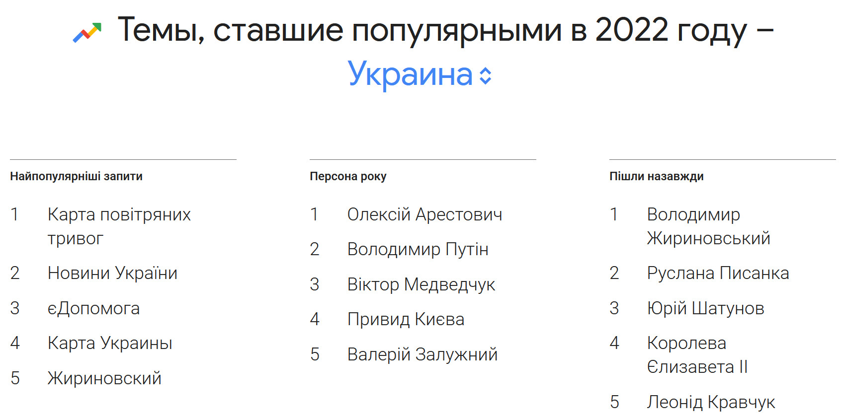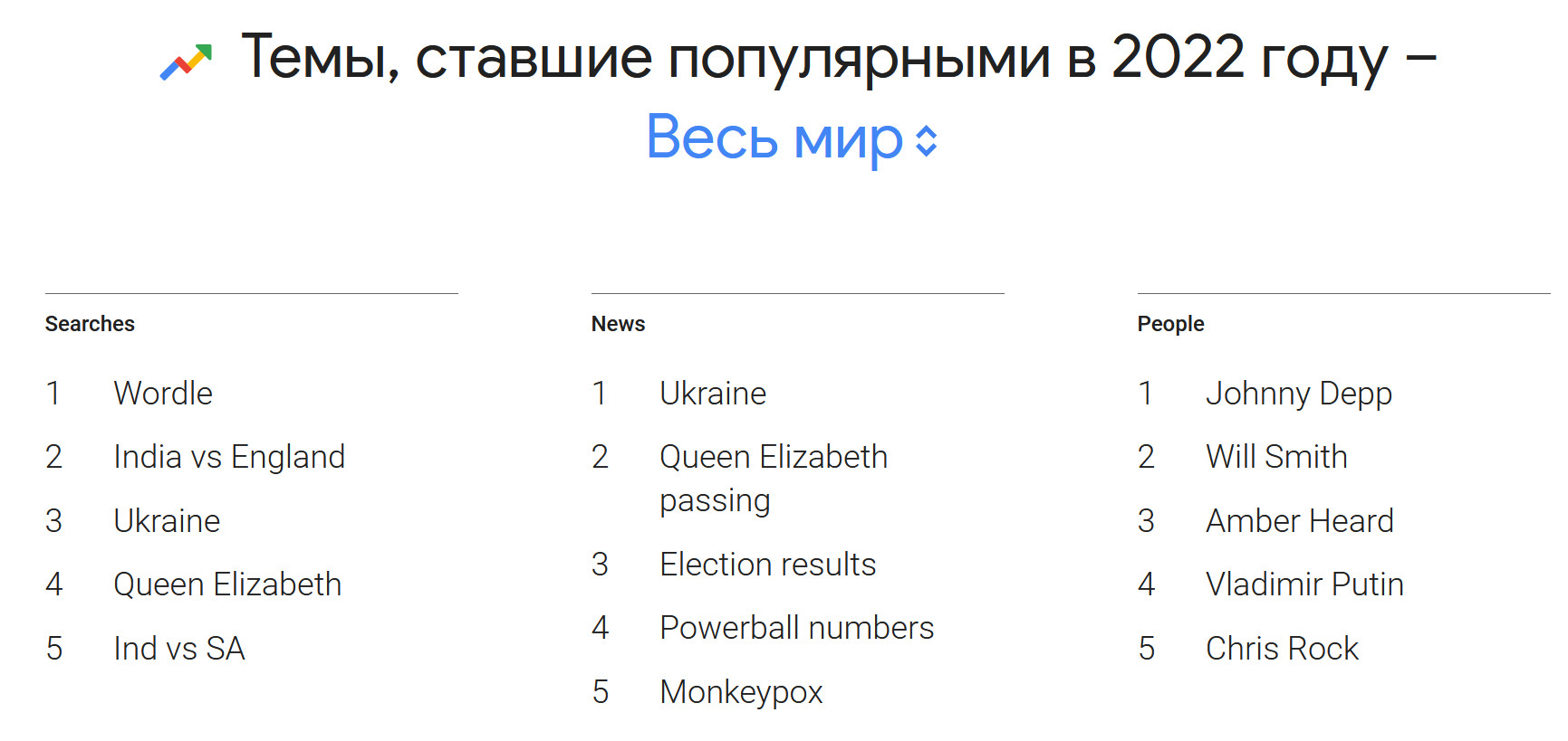 Поисковик Google опубликовал самые популярные запросы в 2022 году, разбитые по темам.