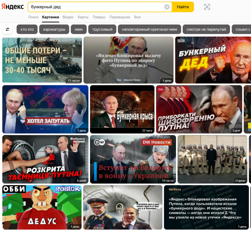 Видимо, после этой утечки цензурирование запросов по крайней мере по поводу Путина было то ли убрано, то ли скорректировано, потому что по тому же "бункерному деду" Yandex теперь все прекрасно находит, включая картинки из статей, где говорилось об этом цензурировании.