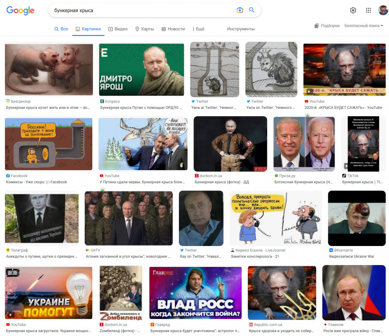 Однако "бункерная крыса" дает вот такие результаты поиска.