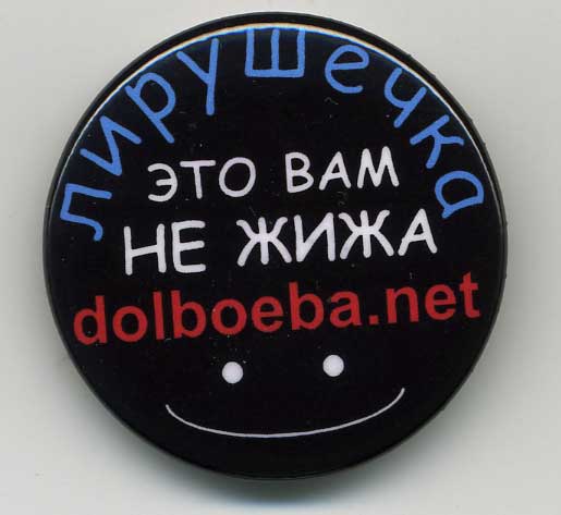Участникам мероприятия выдавали всякие значки с глумлением над ЖЖ. Я не догадался все собрать, но вот один из них - самый эффектный.