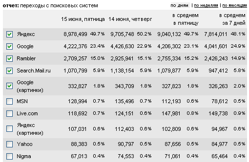 Интересная и довольно репрезентативная статистика, показывающая, какие именно поисковики предпочитают в зоне RU: