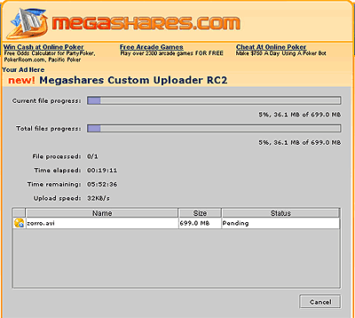 Сейчас туда заливаю многострадальный Zorro. Если зальется и будет скачиваться, тогда можно будет подумать над тем, чтобы с "Рапиды" на него переползти. На "Рапиду" я это кино в архивах так и не закачал вчера - утомила эта "Рапида".