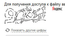 Расскажите кто-нибудь "Яндексу", что это явное издевательство под видом капчи, которую он требует вводить при скачивании чего-то на Народ.Диске, человеком со здоровейшей психикой и совершенным зрением распознается примерно в одном случае из пяти. То есть такой человек в любом случае как минимум два-три раза сначала ошибается. А человек с чуть менее железными нервами и чуть менее острым зрением эту капчу может вообще не разобрать никогда - лично знаю нескольких вполне нормальных людей, у которых данную капчу не получилось распознать ни разу.