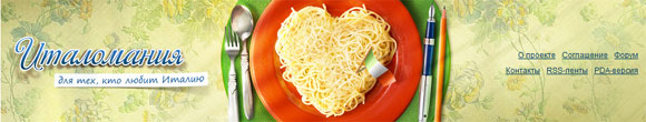 Ну, вот теперь уже можно представить совсем недавно стартовавший проект, который называется "Италомания". Это нечто вроде блога блогов для людей, любящих Италию и интересующихся самыми разнообразными аспектами ее жизни: история, культура, туризм, путешествия, кухня, вино, шопинг и так далее и тому подобное. Любой желающий может завести на проекте свой блог и предлагать записи блога для публикации на главной странице проекта. Самые интересные записи попадают на главную страницу "Италомании", причем авторам за это еще и платятся гонорары.