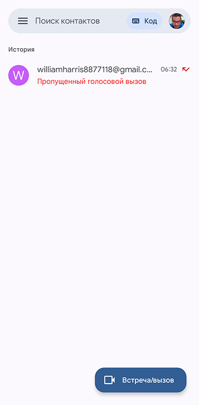 Зашел в этот Meet, которым я в жизни никогда не пользовался - и точно, вот этот звонок. Видимо, кто-то ошибся просто. Или спамер какой-то - фиг знает.