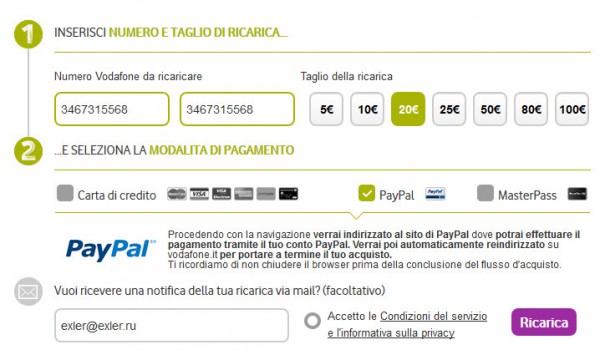 Но мне написали ребята из российской фирмы, которые поставляют эти симкарты плюс, что очень важно и полезно, регистрируют их непосредственно у итальянского Vodafone, то есть у вас есть нормальный доступ в личный кабинет. Раньше там была проблема с пополнением счета через сайт (они не приняли даже мою испанскую Visa), однако сейчас там можно платить через PayPal, так что никаких проблем уже нет.