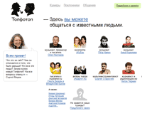 Ан нет! Этот Топотоп, оказывается, выкупил некий Сергей Миров, который на этом домене поднял новый Топотоп, где из всего многообразия старого проекта вычленили идею общения со знаменитостями, более ничего. Идея, кстати, не такая уж плохая, как может показаться, да и дизайн проекта - нормальный такой вебдванольчик (что бы ни означало это достаточно абстрактное понятие), а не кошмарный флеш, как у старого дитяти. Впрочем, весь приличный дизайн заметно портит огромная "шапка", которую я сначала принял за прикольную идею размещения традиционного облака тэгов, а на деле это оказалась реклама какой-то там дизайн-студии. Смотрится это кошмарно. Правда, шапка вроде как проявляется не всегда. Но тем не менее.