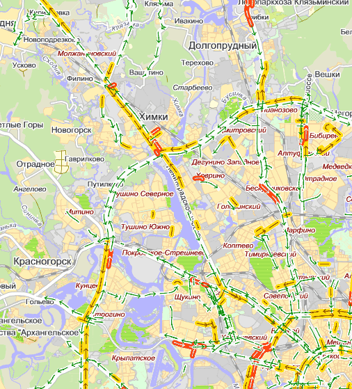 Я смотрю, Яндекс.Пробки теперь и Подмосковье захватывают? Это приятно. Но нужно выяснить, насколько достоверно. А вот что они зелененькие стрелки от GPS водителей туда накладывают и не дают отключать - это они зря. На мой взгляд, только мешают.