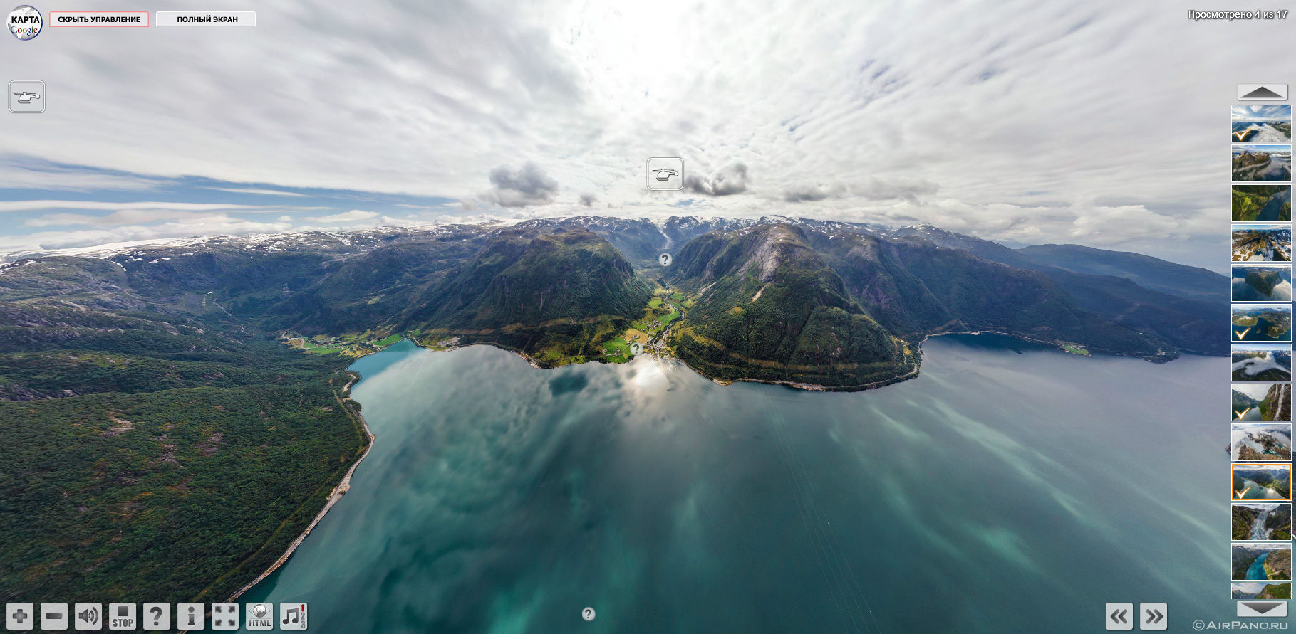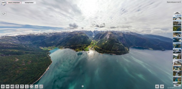 Прислали ссылку на сайт Airpano.ru. Сферические аэрофотопанорамы высокого разрешения. Обалденные совершенно. Причем во время просмотра панорамы доступны значки перемещения на другие панорамы, снятые в этом регионе. Вот, например, Норвегия.