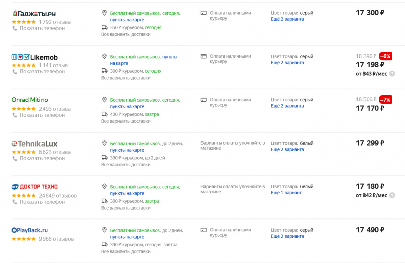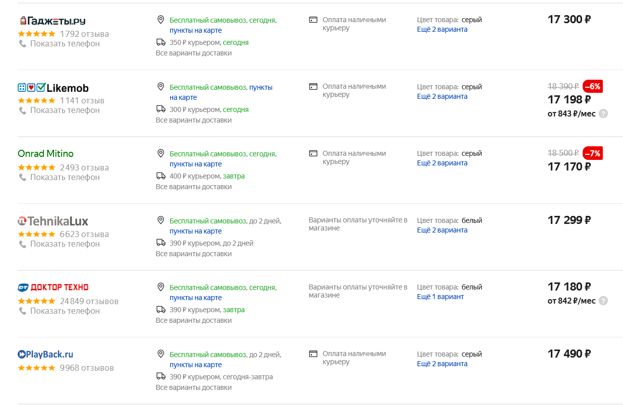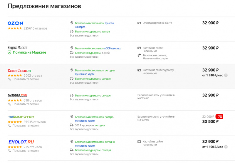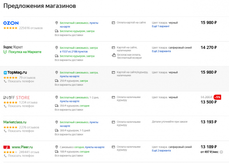 Вот его цена на Яндекс.Маркете.