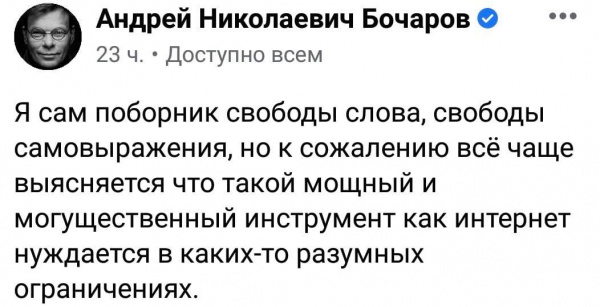 Похоже, эти твари готовят какую-то очередную поганку для российского Интернета. Иначе с чего вдруг так активизировались продажные уродцы, типа Бочарика, требуя их немедленно отрегулировать вместе с Интернетом? Поборник он, бл#, свободы слова. Впрочем, да, если за бочаровскую "свободу слова" хорошо платят, да еще и говорят, как это свободное слово должно звучать, то тогда оно конешно...