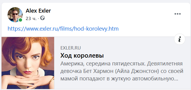 Со второй статьей я сделал самый обычный анонс, то есть просто запостил ссылку в Facebook, а движок FB подтащил начало рецензии и картинку.