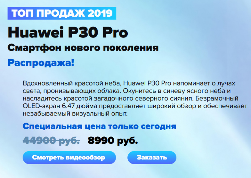 А вот еще Huawei P30 Pro за 8990 рублей не хотите?